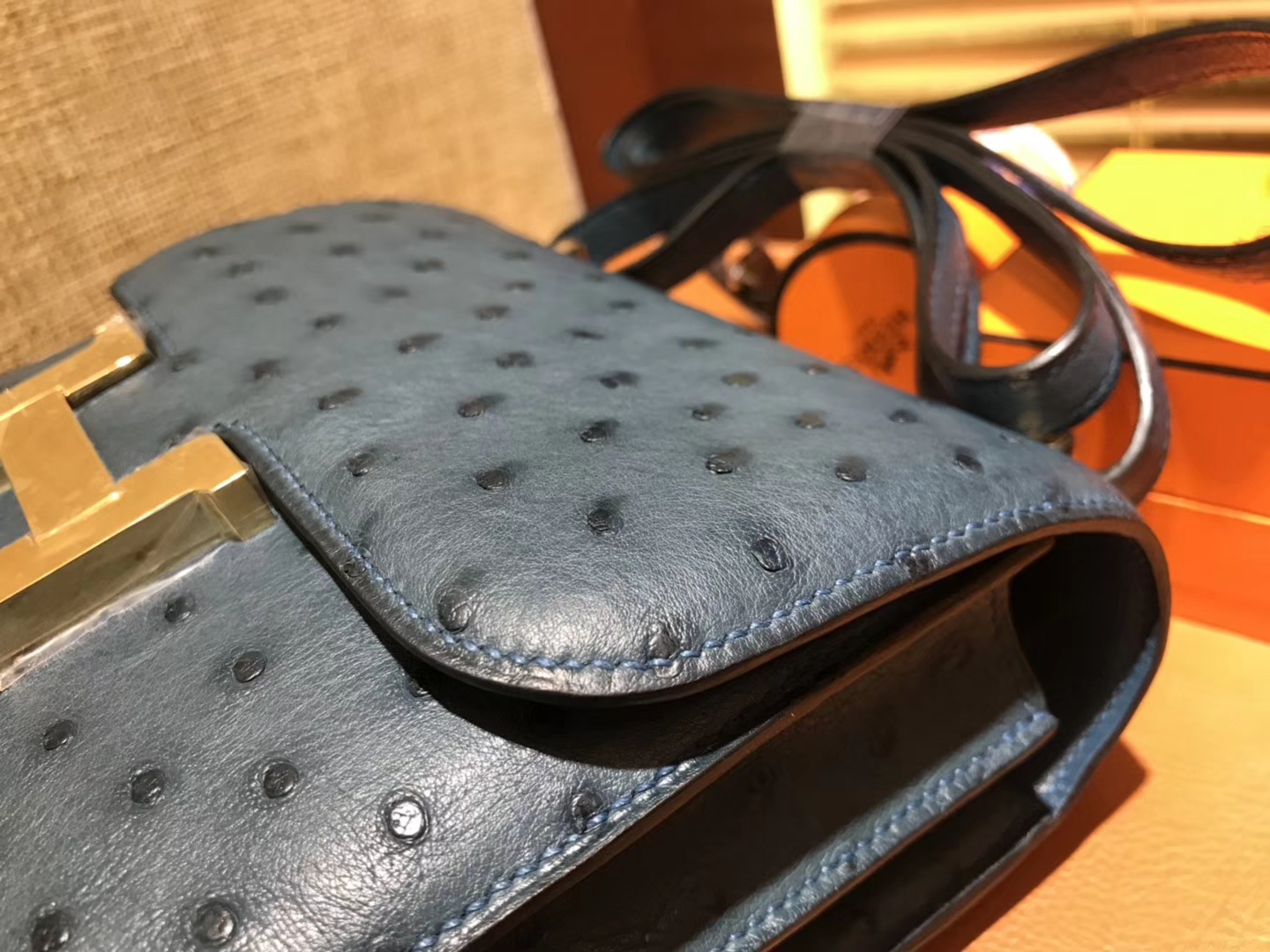Hermès(爱马仕)Constance 18cm 靛蓝色 南非进口鸵鸟 KK级别 顶级全手工 金扣 2019年7月16日 0 爱马仕包包官网 Constance 18CM Constance 空姐包 皮料 鸵鸟 Ostrich 品牌:Hermès(爱马仕);类别:Constance 空姐包;颜色:靛蓝色;材质:南非进口鸵鸟皮;等级:顶级;附件:全套包装礼盒;尺寸:18cm;功能:单肩背包