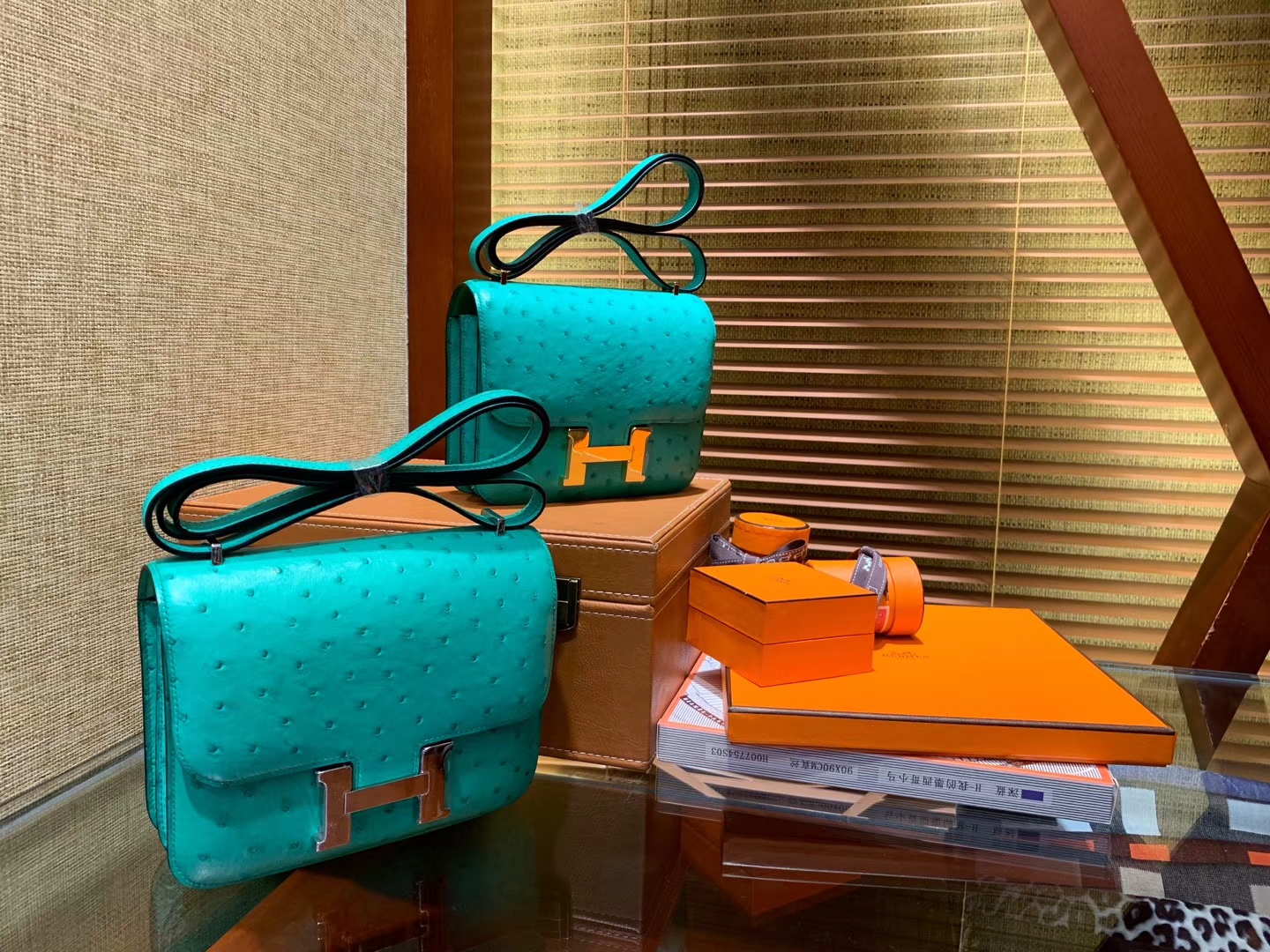 Hermès(爱马仕)Constance空姐包 湖水绿 南非KK鸵鸟 顶级手缝工艺 金扣 银扣 18cm 2019年7月26日 0 爱马仕包包官网 Constance 18CM Constance 空姐包 皮料 鸵鸟 Ostrich 品牌:Hermès(爱马仕);类别:Constance 空姐包;颜色:湖水绿;材质:南非KK鸵鸟皮;等级:顶级;附件:全套包装礼盒;尺寸:18cm;功能:单肩背包