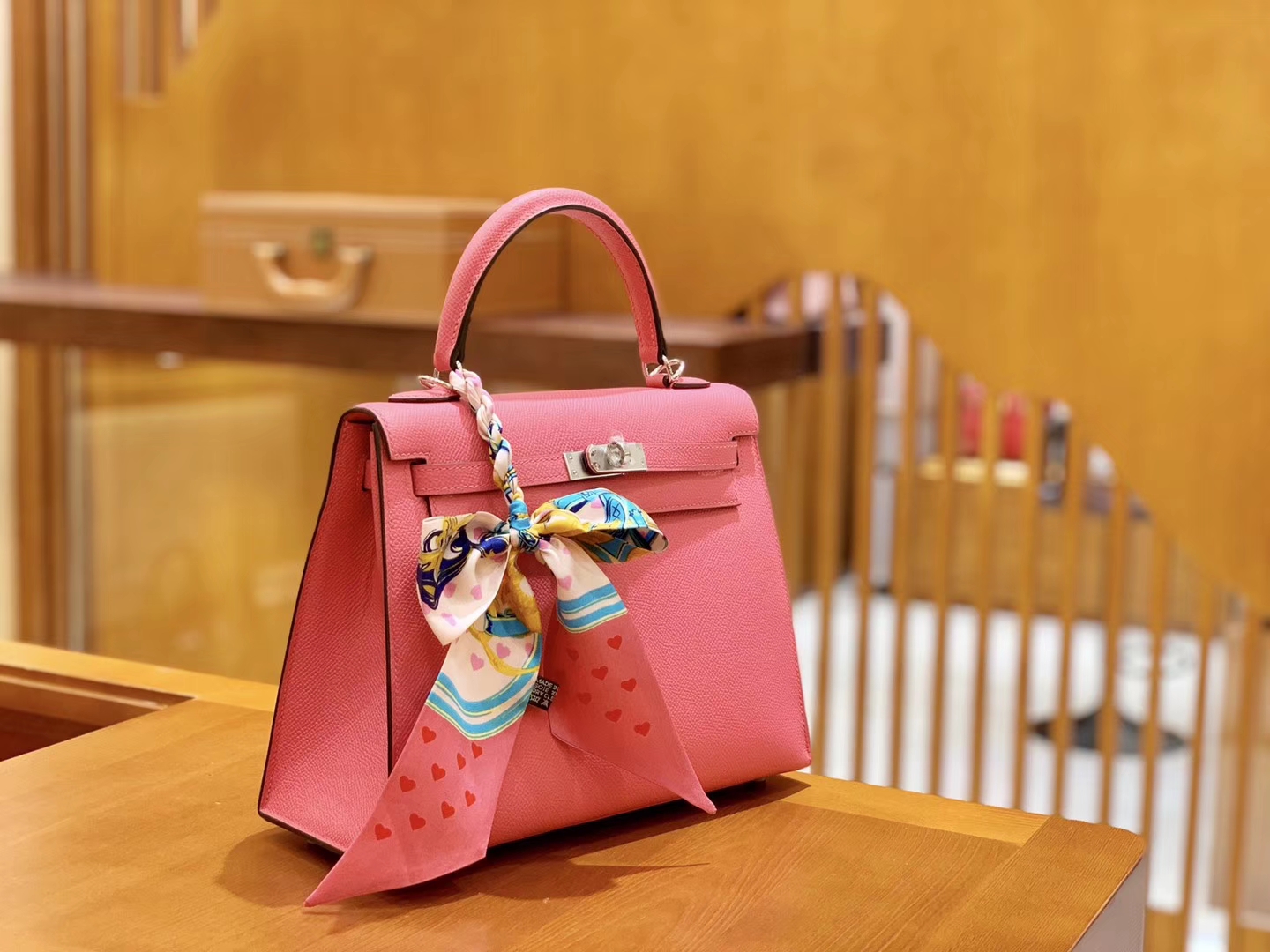 Hermès(爱马仕)Kelly 凯莉包 唇膏粉 掌纹牛皮 进口原料 臻品级别 银扣 25cm 现货 2019年10月15日 0 爱马仕包包官网 Kelly 凯莉包 品牌:Hermès(爱马仕);类别:Kelly 凯莉包;颜色:唇膏粉;材质:掌纹牛皮;等级:顶级;附件:全套包装礼盒;尺寸:25cm;功能:手提单肩包
