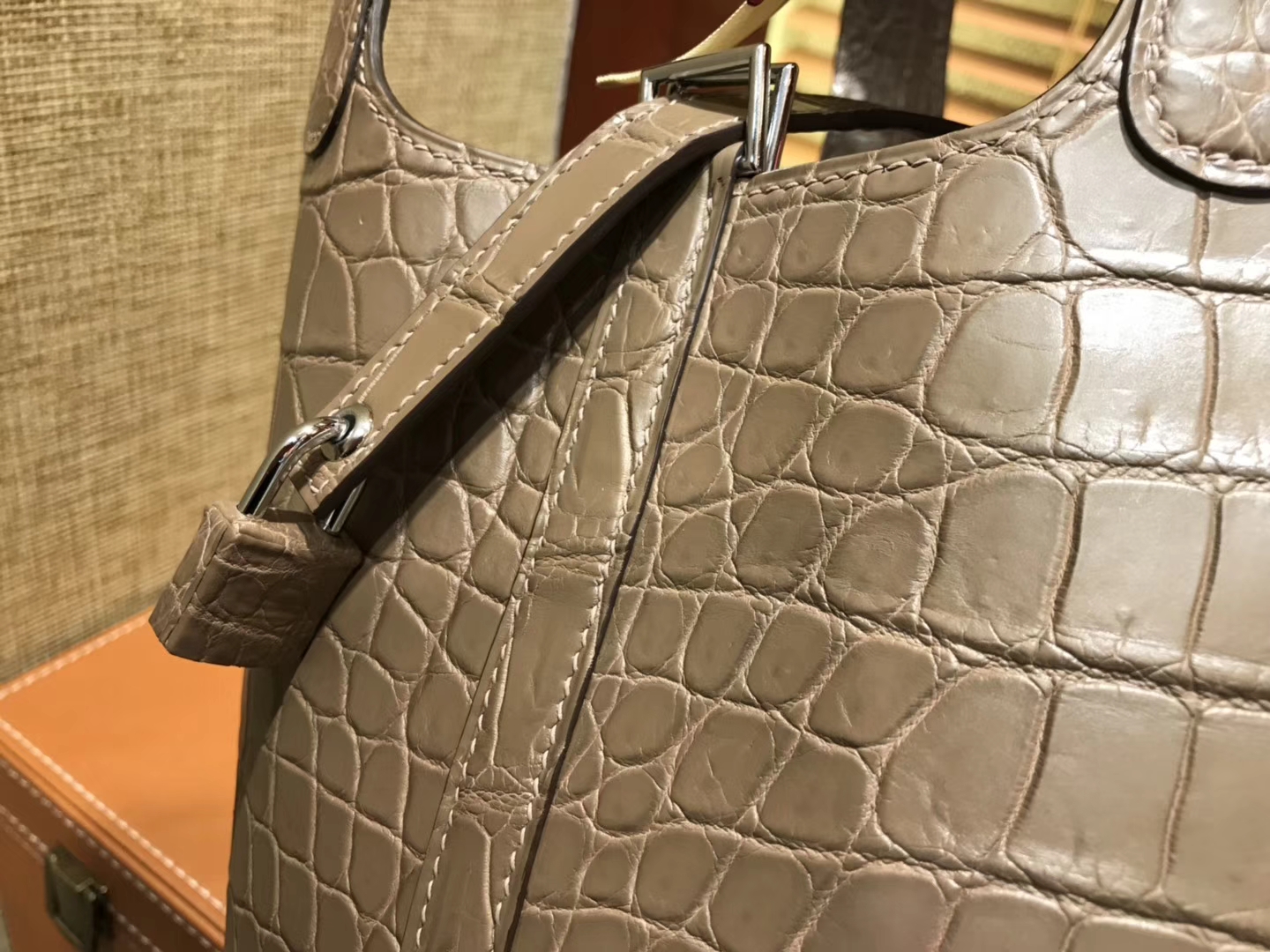 Hermès(爱马仕)Picotin 菜篮子 鳄鱼皮 斑鸠灰 全手工缝制 18cm 2019年7月7日 0 爱马仕包包官网 Picotin 菜篮子 品牌:Hermès(爱马仕);类别:Picotin 菜篮子;颜色:斑鸠灰;材质:鳄鱼皮;等级:顶级;附件:全套包装礼盒;尺寸:18cm;功能:手提单肩包