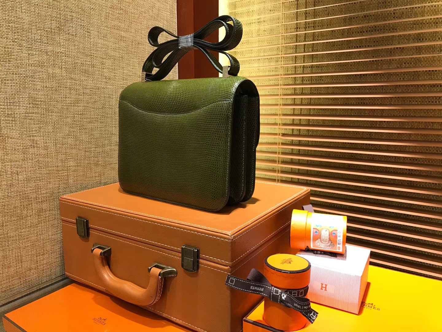 Hermès(爱马仕)Constance 空姐包 蜥蜴皮 橄榄绿 银扣 24cm 2020年2月19日 0 爱马仕包包官网 Constance 24CM Constance 空姐包 品牌:Hermès(爱马仕);类别:Constance 空姐包;颜色:原色;材质:橄榄绿;等级:顶级;附件:全套包装礼盒;尺寸:24cm;功能:单肩背包