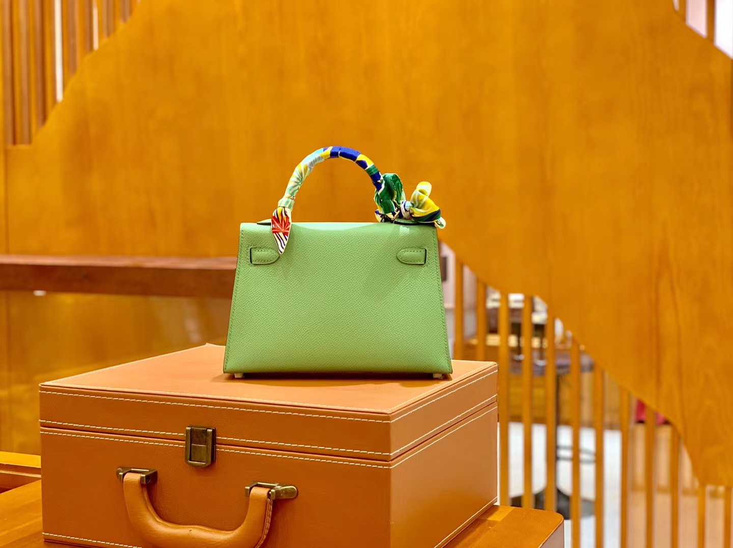 Hermès(爱马仕)迷你2代 19cm 掌纹牛皮 牛油果绿 金扣 新增现货 小仙女必备 2020年5月17日 0 爱马仕包包官网 Epsom MiniKelly 迷你凯莉 品牌:Hermès(爱马仕);类别:Mini Kelly 迷你凯莉包;颜色:牛油果绿;材质:精选掌纹牛皮;等级:顶级;附件:全套包装礼盒;尺寸:19cm;功能:手提单肩包